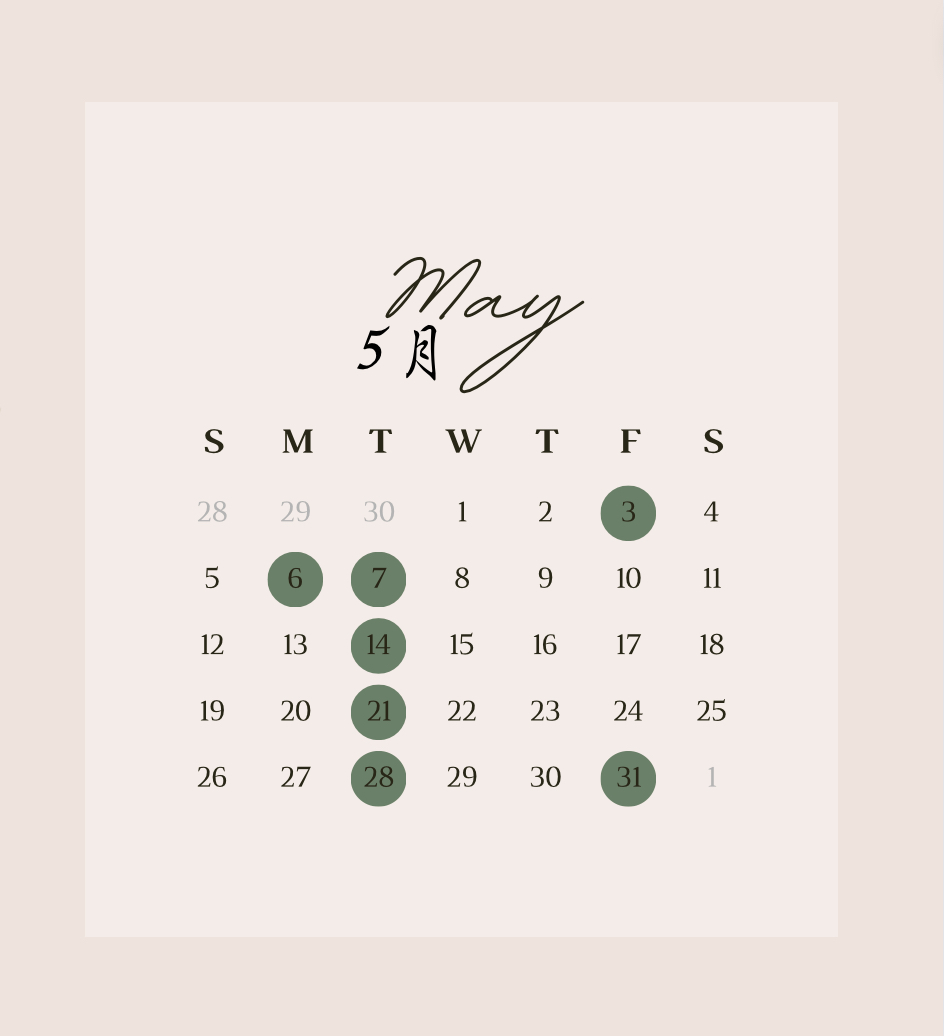 🍀5月のお休み🍀